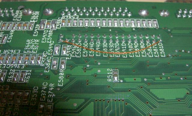Da ich keinen SMD Transistor zur Hand hatte, musste einer aus einem ausgedienten A2000 Board herhalten, wie auch der 4.7Ohm Widerstand.