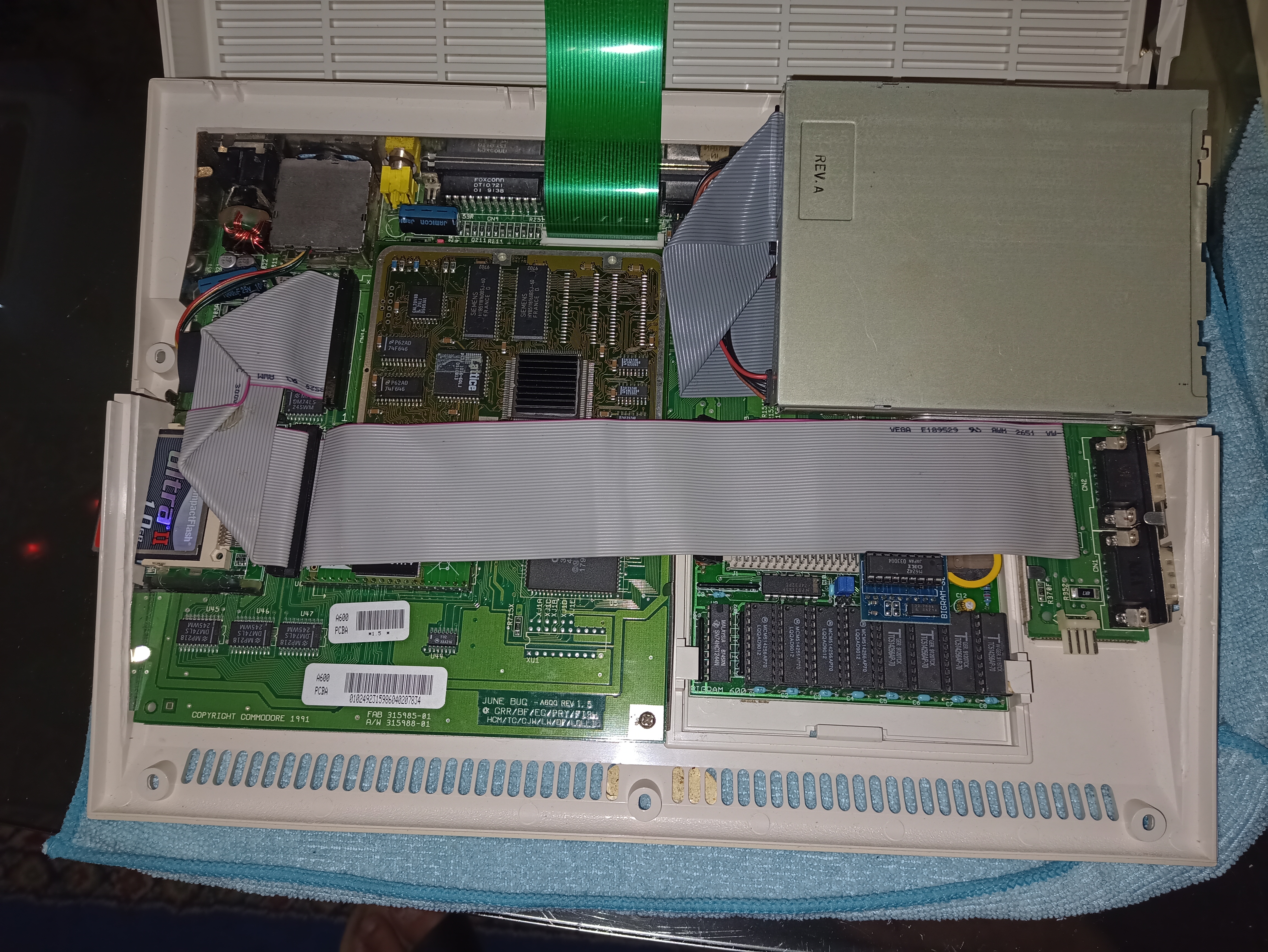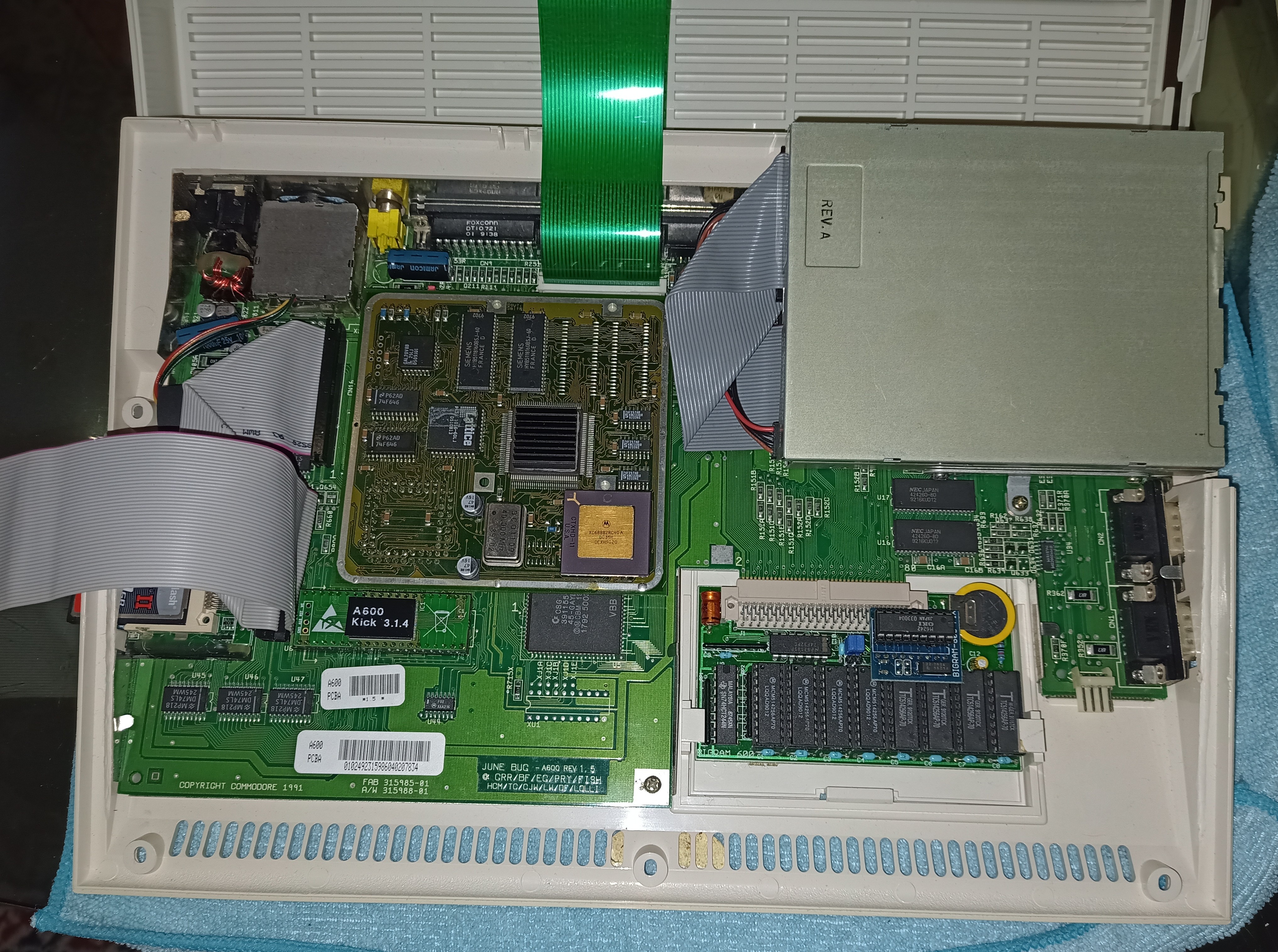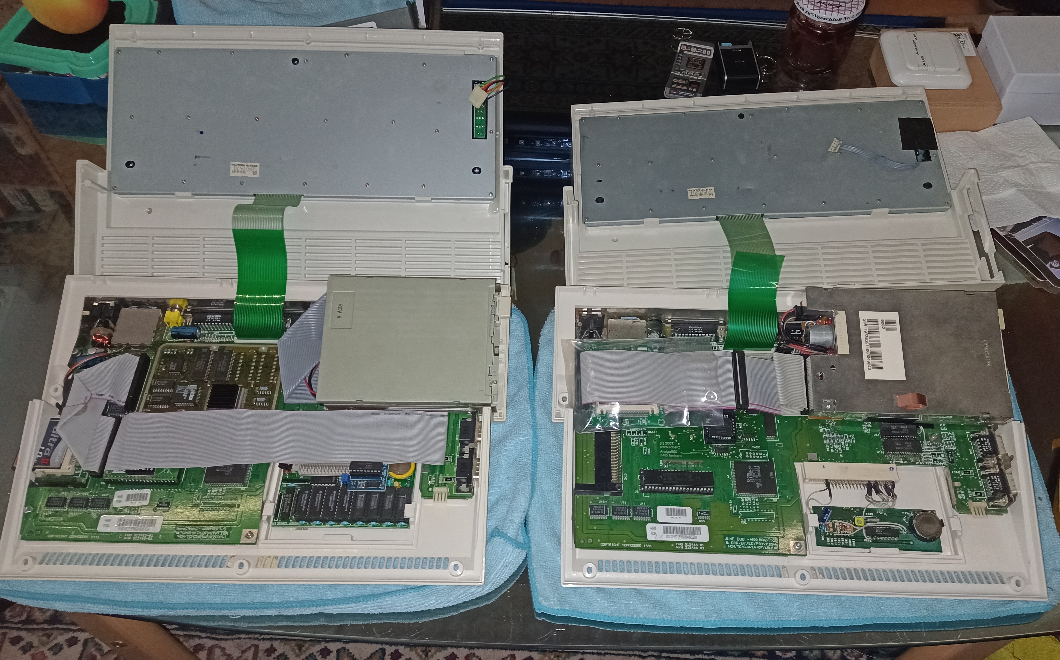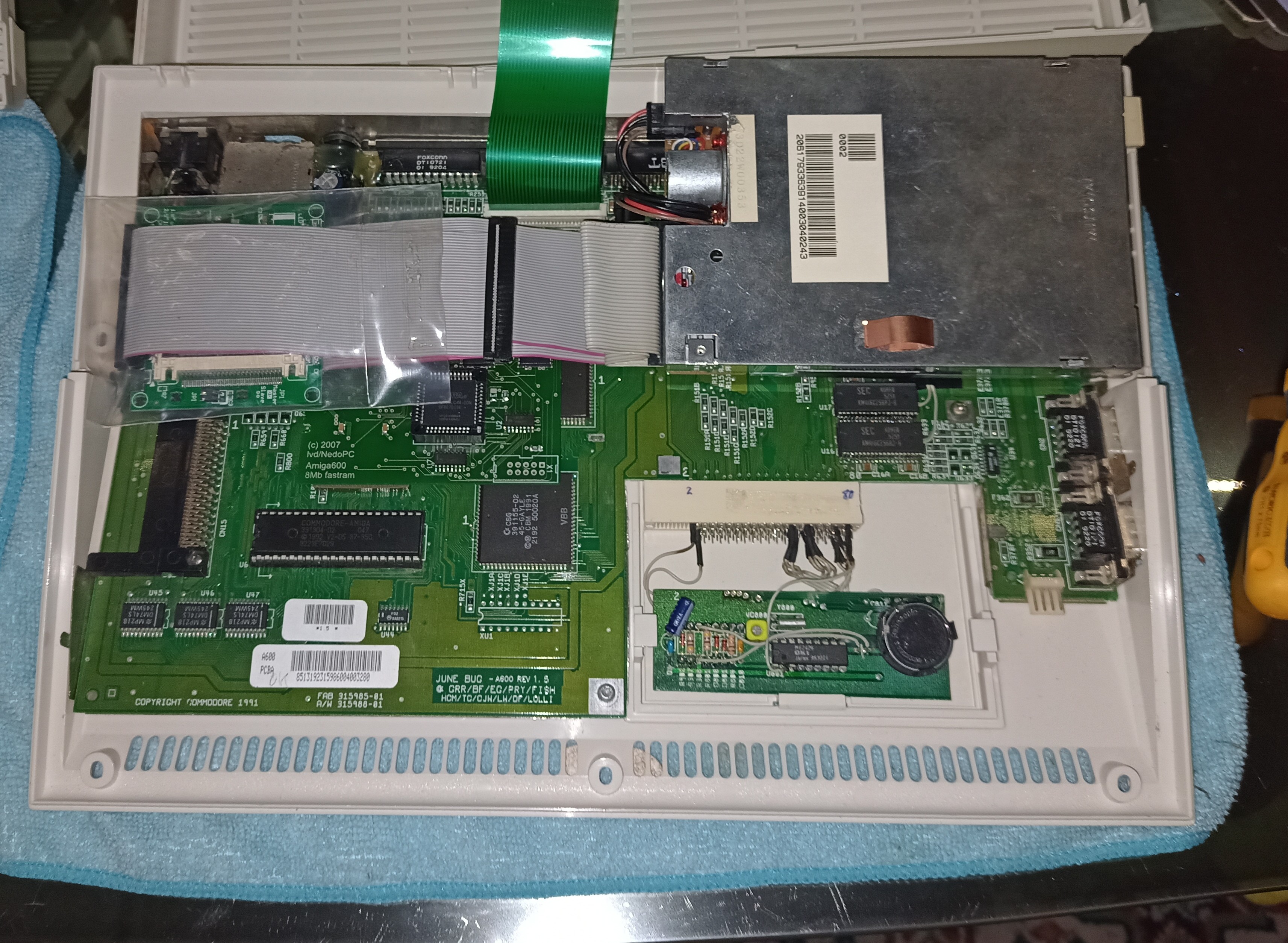 Beide A600 wurden noch per Huckepack des ChipMem auf 2MB Onboard aufgebohrt, und jeweils eine recyclede RTC an den Erweiterungsport vervollständigt.